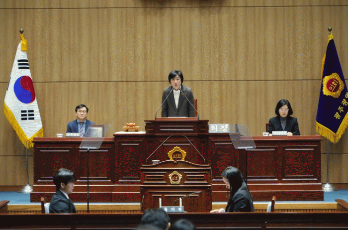 ±¤ÁÖ±¤¿ª½ÃÀÇȸ ½Å¼öÁ¤ ÀÇÀåÀº ¡°±¤ÁÖ¡¤Àü³² ÇàÁ¤ÅëÇÕÀº Áö¿ªÀÇ ¹Ì·¡¿Í ½Ã¹Î »î¿¡ Å« ¿µÇâÀ» ¹ÌÄ¡´Â »ç¾ÈÀÎ ¸¸Å, ½Ã°¡ Á¦ÃâÇÑ ÀǰßÁ¦½Ã ¾È°ÇÀ» ¸Å¿ì ½ÅÁßÇÏ°Ô ´Ù·ç°í ÀÖ´Ù¡±¸ç ¡°Æ¯º°¹ýÀÌ ±¹È¸¸¦ Åë°úÇÏ´Â ¸¶Áö¸· ¼ø°£±îÁö ½Ã¹ÎµéÀÇ ¸ñ¼Ò¸®¸¦ ´ã¾Æ³»±â À§ÇØ ÃÖ¼±À» ´ÙÇϰڴÙ.¡±°í ¹àÇû´Ù.