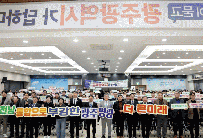[ÅåÅå´º½º]¿µ±¤±ºÀº 2¿ù 5ÀÏ ¿µ±¤±ºÃ» ´ëȸÀǽǿ¡¼ ¿¸° ±¤ÁÖÀü³² ÇàÁ¤ÅëÇÕ ¿µ±¤±º »ó»ýÅäÅ©¿¡¼ °±âÁ¤ ±¤ÁÖ±¤¿ª½ÃÀåÀÇ ¹æ¹®À» ±º¹Îµé°ú ÇÔ²² ȯ¿µÇß´Ù. À̹ø Çà»ç´Â ±¤ÁÖ¡¤Àü³² ÇàÁ¤ÅëÇÕ ¹è°æ°ú Áö¿ª ¹ßÀü Àü·«À» °øÀ¯ÇÏ°í ±º¹ÎµéÀÇ ÀǰßÀ» ¼ö·ÅÇϱâ À§ÇØ ¸¶·ÃµÆÀ¸¸ç, Çѱ¹ÀÚµ¿Â÷»ê¾÷¿¬±¸¿ø ¹× À̸ðºô¸®Æ¼ °ü°èÀÚµé, °¢ ±â°ü¡¤»çȸ´ÜüÀå, ±º¹Î µî 250¿© ¸íÀÌ Âü¼®Çß´Ù.