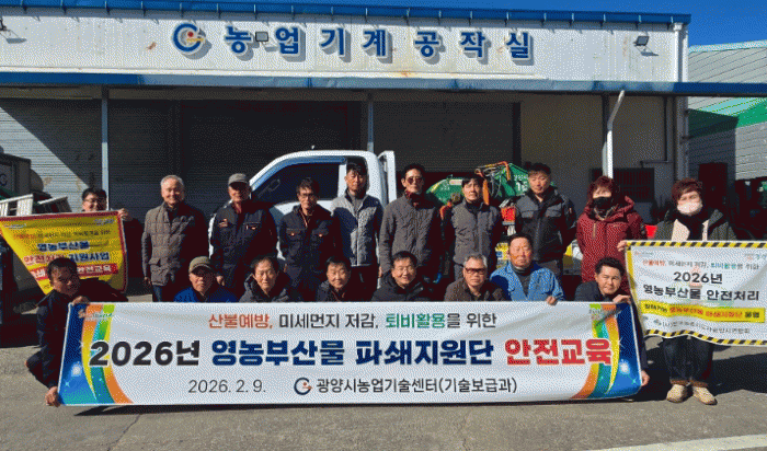 [ÅåÅå´º½º]±¤¾ç½Ã´Â Áö³ 9ÀÏ ³ó¾÷±â¼ú¼¾ÅÍ¿¡¼ ¡®2026³â ¿µ³óºÎ»ê¹° ÆÄ¼âÁö¿ø´Ü¡¯ º»°Ý ¿î¿µÀ» ¾ÕµÎ°í ¾ÈÀü±³À°°ú ÇÔ²² ¹ß´ë½Ä ¹× Ä·ÆäÀÎÀ» °³ÃÖÇß´Ù°í ¹àÇû´Ù.