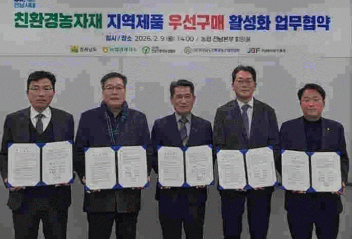 [ÅåÅå´º½º]Àü¶ó³²µµ´Â 9ÀÏ ³óÇùÁß¾Óȸ Àü³²º»ºÎ¿¡¼ Áö¿ª¿¡¼ »ý»êÇÑ Ä£È¯°æ³óÀÚÀç ¿ì¼± ±¸¸Å È®´ë¸¦ À§ÇÑ ¹Î¡¤°ü¡¤ÇÐ ¾÷¹«Çù¾àÀ» Çϰí, Áö¿ª ³» »ý»ê-¼Òºñ°¡ À̾îÁö´Â ¼±¼øÈ¯ ü°è ±¸Ãà¿¡ ³ª¼¹´Ù.