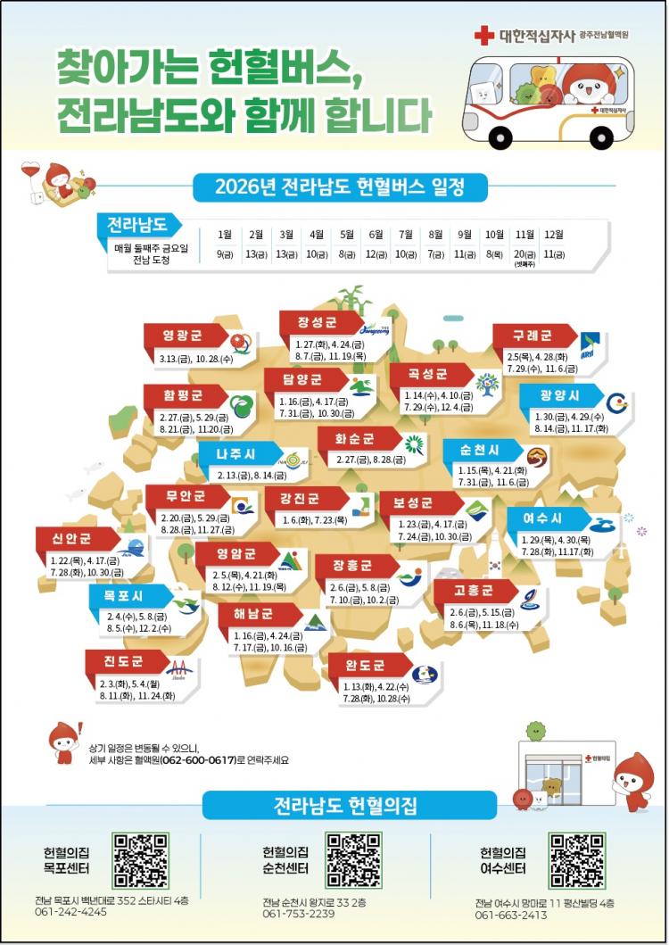 ÇÑÆí Àü±¹ 1À§ÀÇ ÁöÀÚü ÇåÇ÷·üÀ» º¸ÀÌ´Â ´ëÀü¼¼Á¾Ãæ³²Áö¿ª¿¡¼´Â ¸Å¿ù 1ȸÀÇ ´ÜüÇåÇ÷À» ½Ç½ÃÇÏ´Â ÁöÀÚü°¡ Ÿ ½Ãµµ¿¡ ºñÇØ ¿ùµîÈ÷ ¸¹Àº °ÍÀ¸·Î ³ªÅ¸³µ´Ù. ¿ÃÇØ ±¤ÁÖÀü³² Áö¿ª¿¡¼µµ ±¤ÁÖ±¤¿ª½Ãû°ú Àü¶ó³²µµÃ»¿¡¼´Â °¢°¢ ¿¬°£ ¸Å¿ù ÇåÇ÷ ÀÏÁ¤À» È®Á¤ÇÏ¿´À¸¸ç Ç÷¾×¿ø¿¡¼´Â 2026³â ÁöÀÚü ¿¬°£ ÇåÇ÷ÀÏÁ¤ Æ÷½ºÅ͸¦ Á¦ÀÛÇÏ¿© ½Ã¹Îµé¿¡°Ô ¾È³»Çϰí ÀÖ´Ù.
