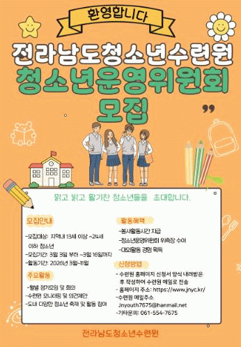 [ÅåÅå´º½º] Àü¶ó³²µµÃ»¼Ò³â¼ö·Ã¿øÀº 2026³â Àü¶ó³²µµÃ»¼Ò³â¼ö·Ã¿ø û¼Ò³â¿î¿µÀ§¿øÈ¸¸¦ ¿À´Â 3¿ù 3ÀϺÎÅÍ 3¿ù 16ÀÏ 18½Ã±îÁö Áö¿ª ³» û¼Ò³âÀ» ´ë»óÀ¸·Î ¸ðÁýÇÑ´Ù.