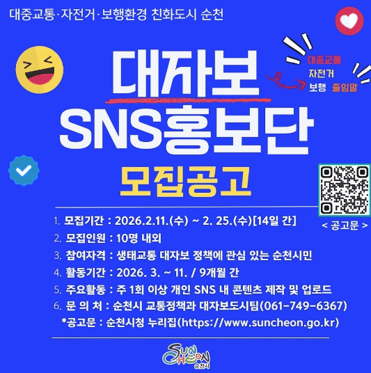 [ÅåÅå´º½º]¼øÃµ½Ã´Â »ýű³ÅëÀÇ ÀÏȯÀ¸·Î ÃßÁø ÁßÀÎ ¡®´ëÀÚº¸¡¯ Á¤Ã¥À» ½Ã¹Î ´«³ôÀÌ¿¡¼ ¾Ë¸®°íÀÚ '2026³â ¼øÃµ½Ã ´ëÀÚº¸ SNS È«º¸´Ü'À» ¸ðÁýÇÑ´Ù°í ¹àÇû´Ù.