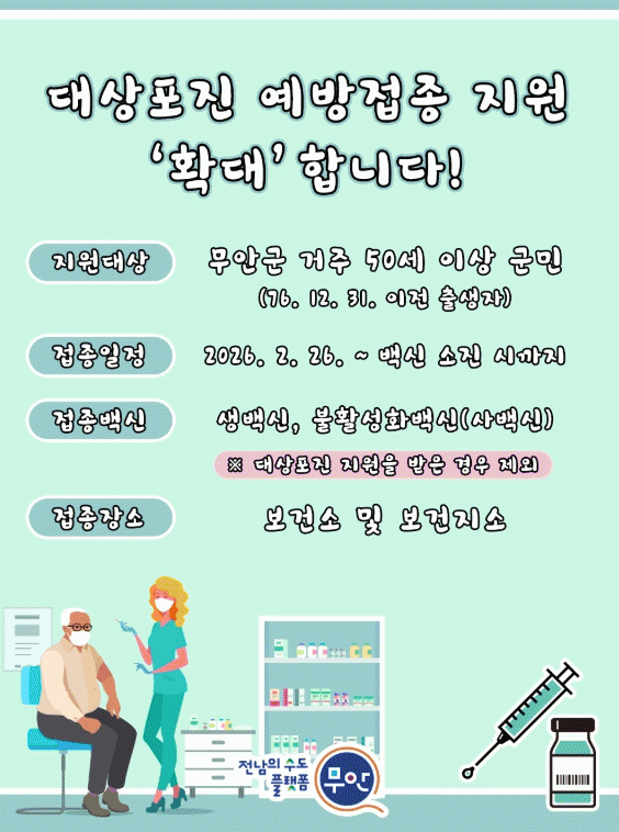 [ÅåÅå´º½º]¹«¾È±ºÀÌ ¿À´Â 23ÀϺÎÅÍ ´ë»óÆ÷Áø ¿¹¹æÁ¢Á¾ Áö¿ø ´ë»óÀ» È®´ëÇÑ´Ù.