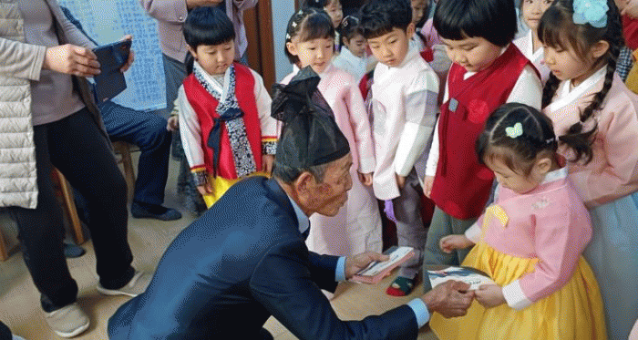 À̳¯ ¾î¸°À̵éÀº ÁغñÇÑ À²µ¿°ú ³ë·¡¸¦ ¼±º¸ÀÌ¸ç ¾î¸£½Åµé¿¡°Ô ¿ôÀ½À» ÀüÇß°í, »õÇØ Àλ縦 ´ã¾Æ Å«ÀýÀ» ¿Ã·È´Ù. ¾î¸£½ÅµéÀº ¾ÆÀ̵éÀÇ ¹æ¹®¿¡ °¨»çÀÇ ¶æÀ» ÀüÇÏ¸ç ´ö´ãÀ» °Ç³Þ´Ù.