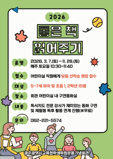 [ÅåÅå´º½º]±¤Áֽñ³À°Ã»Çлýµ¶¸³¿îµ¿±â³äȸ°üÀº ¿À´Â 3~11¿ù À¯¾Æ ¹× ÃʵîÇб³ ÀúÇгâ ÇлýÀ» ´ë»óÀ¸·Î µ¶¼ ÇÁ·Î±×·¥ ¡®ÁÁÀº Ã¥ ÀоîÁֱ⡯¸¦ ¿î¿µÇÑ´Ù.