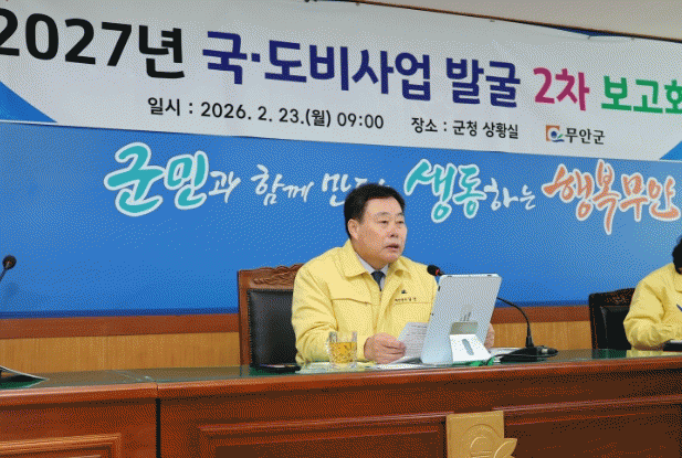 [ÅåÅå´º½º]¹«¾È±ºÀº 23ÀÏ °£ºÎ°ø¹«¿øµéÀÌ Âü¼®ÇÑ °¡¿îµ¥ 2027³âµµ ±¹¡¤µµºñ Áö¿ø °ÇÀÇ»ç¾÷ ¹ß±¼ º¸°íȸ¸¦ °³ÃÖÇß´Ù°í ¹àÇû´Ù.