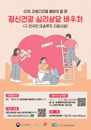 Áö¿ø ´ë»óÀº ¡ãÁ¤½Å°Ç°º¹Áö¼¾ÅÍ¡¤Ã»¼Ò³â»ó´ãº¹Áö¼¾ÅÍ¡¤Wee¼¾ÅÍ¡¤WeeŬ·¡½º¡¤Á¤½ÅÀÇ·á±â°ü µî¿¡¼ ½É¸®»ó´ãÀÌ ÇÊ¿äÇÏ´Ù°í ÀÎÁ¤ÇÑ ½Ã¹Î ¡ã±¹°¡°Ç°°ËÁø Á¤½Å°Ç°°Ë»ç¿¡¼ Áß°£ Á¤µµ ÀÌ»óÀÇ ¿ì¿ïÀÌ È®ÀÎµÈ ½Ã¹Î ¡ãÀÚ¸³Áغñû³â ¹× º¸È£¿¬À徯µ¿ µîÀÌ´Ù.