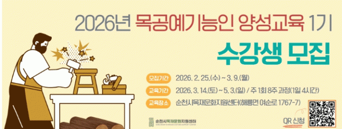[ÅåÅå´º½º]¼øÃµ½Ã´Â ½Ã¹ÎµéÀÇ ¸ñ°ø üÇè ±âȸ¸¦ È®´ëÇÏ°í ¸ñÀç¹®È È°¼ºÈ¸¦ À§ÇØ ¡®2026³â ¸ñ°ø¿¹±â´ÉÀÎ ¾ç¼º±³À° 1±â¡¯ ¼ö°»ýÀ» ¿À´Â 3¿ù 9ÀϱîÁö ¸ðÁýÇÑ´Ù°í ¹àÇû´Ù.