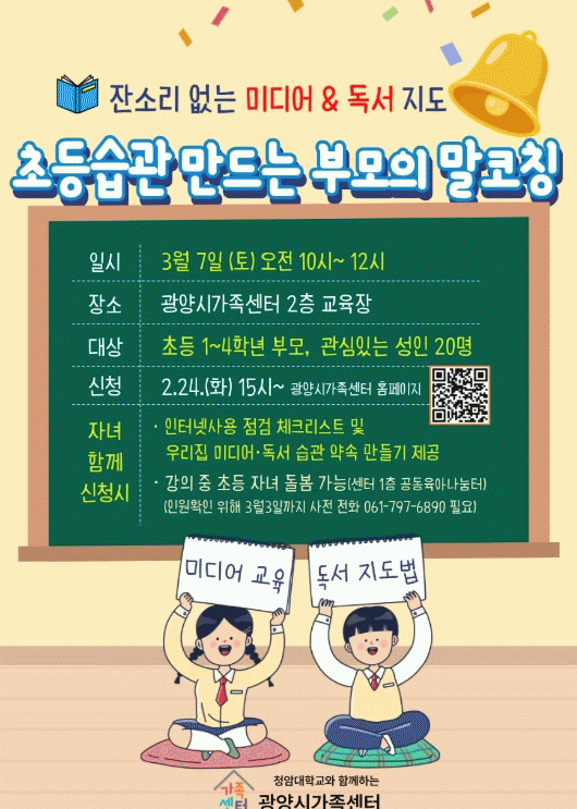 ±âŸ ÀÚ¼¼ÇÑ ±³À° ÀÏÁ¤°ú °úÁ¤º° ¾È³» »çÇ×Àº ±¤¾ç½Ã°¡Á·¼¾ÅÍ ´©¸®Áý ¶Ç´Â īī¿ÀÅå ä³ÎÀ» ÅëÇØ È®ÀÎÇÒ ¼ö ÀÖÀ¸¸ç, °ü·Ã ¹®ÀÇ´Â ±¤¾ç½Ã°¡Á·¼¾ÅÍ(¢Ï061-797-6890)·Î ÇÏ¸é µÈ´Ù.