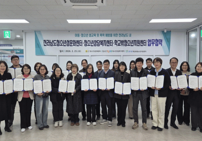 [ÅåÅå´º½º]Àü¶ó³²µµÃ»¼Ò³â¼º¹®È¼¾ÅÍ´Â Àü¶ó³²µµÃ»¼Ò³â»ó´ãº¹Áö¼¾ÅÍ¡¤Àü¶ó³²µµÇб³¹Ûû¼Ò³âÁö¿ø¼¾Å͸¦ ºñ·ÔÇÏ¿© 22°³ ½Ã.±º ¡®Ã»¼Ò³â»ó´ãº¹Áö¼¾ÅÍ¡¤Çб³¹Ûû¼Ò³âÁö¿ø¼¾ÅÍ¡¯¿Í 2¿ù 25ÀÏ ¾÷¹«Çù¾àÀ» ü°áÇß´Ù.