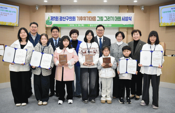 ±¤»ê±¸ÀÇȸ´Â 26ÀÏ ¡®Á¦1ȸ ±¤»ê±¸ÀÇȸ ±âÈÄÀ§±â´ëÀÀ ±×¸²±×¸®±â ´ëȸ¡¯ »óÀå ¼ö¿©½ÄÀ» ¿°í ¿ì¼ö ÀÛǰ¿¡ ´ëÇÑ ½Ã»óÀ» ÁøÇàÇß´Ù. À̹ø ´ëȸ´Â °ü³» ÃʵîÇлýÀ» ´ë»óÀ¸·Î ±âÈÄÀ§±âÀÇ ½É°¢¼ºÀ» ¾Ë¸®°í, ±âÈÄÀ§±â ´ëÀÀÀ» À§ÇÑ »ýȰ ¼Ó ½Çõ ¹æ¾ÈÀ» ½º½º·Î °í¹ÎÇØ º¸´Â ±âȸ¸¦ Á¦°øÇϰíÀÚ ¿ÃÇØ óÀ½ ¸¶·ÃµÆ´Ù.