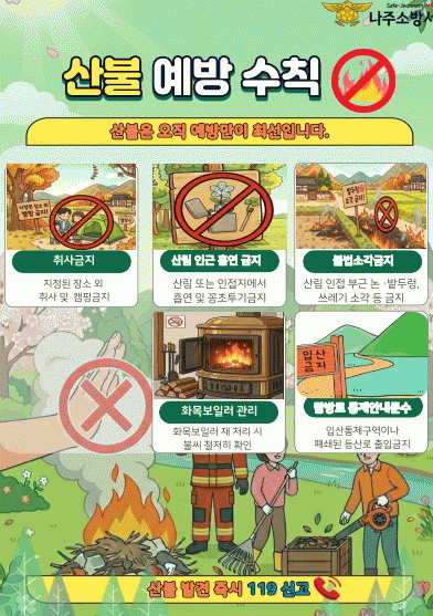 ¶ÇÇÑ ³ªÁÖ½Ãû, °æÂû µî À¯°ü±â°ü°ú Çù·ÂÇÏ¿© »êºÒ ¿¹¹æ Ä·ÆäÀÎÀ» Àü°³, ÁֹΠ´ë»óÀ¸·Î »êºÒ ¿¹¹æ Çൿ ¿ä·É Ä«µå´º½º¿Í Àü´ÜÁö ¹èºÎ, ³óºÎ»ê¹°.¾²·¹±â ¼Ò°¢ ±ÝÁö »êºÒ ¿¹¹æ ¼öÄ¢ È«º¸¸¦ °ÈÇØ °æ°¢½ÉÀ» ³ôÀÏ °èȹÀÌ´Ù.