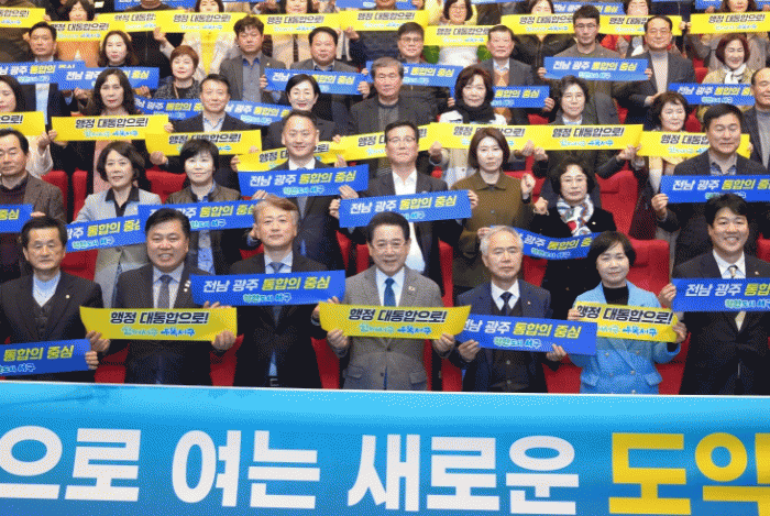 Àü³²µµ °ü°èÀÚ´Â ¡°Áö³ 1ÀÏ Àü³²±¤ÁÖÅëÇÕÆ¯º°½Ã ¼³Ä¡ Ưº°¹ýÀÌ ±¹È¸¸¦ Åë°úÇÏ¸é¼ ´ëÇѹα¹ Á¦1È£ ±¤¿ªÅëÇÕÀÇ ²ÞÀÌ ÀÌ·ïÁ³´Ù¡±¸ç ¡°ÀÌÀç¸í Á¤ºÎÀÇ ÀüÆøÀû Áö¿ø°ú 320¸¸ ½Ã¡¤µµ¹ÎÀÇ ¶ß°Å¿î ¿¸ÁÀÌ ¸¸³ª ¿ª»çÀû ÅëÇÕÀÌ ÀÌ·ïÁ³´Ù. ±íÀÌ °¨»çµå¸°´Ù¡±°í ¹àÇû´Ù.