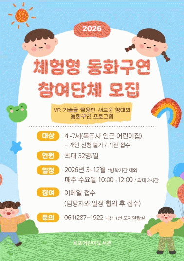 ÇÁ·Î±×·¥Àº ¸ñÆ÷ °ü³» ¾î¸°ÀÌÁý À¯¾Æ(4~5¼¼)¸¦ ´ë»óÀ¸·Î ¸ÅÁÖ ¼ö¿äÀÏ ¿ÀÀü 10½ÃºÎÅÍ 12½Ã±îÁö ¿î¿µµÈ´Ù. Âü¿©¸¦ Èñ¸ÁÇÏ´Â ±â°üÀº µµ¼°ü ´ã´çÀÚ¿Í »çÀü ÀÏÁ¤ ÇùÀǸ¦ °ÅÄ£ µÚ À̸ÞÀÏ·Î ½ÅûÇÏ¸é µÈ´Ù.