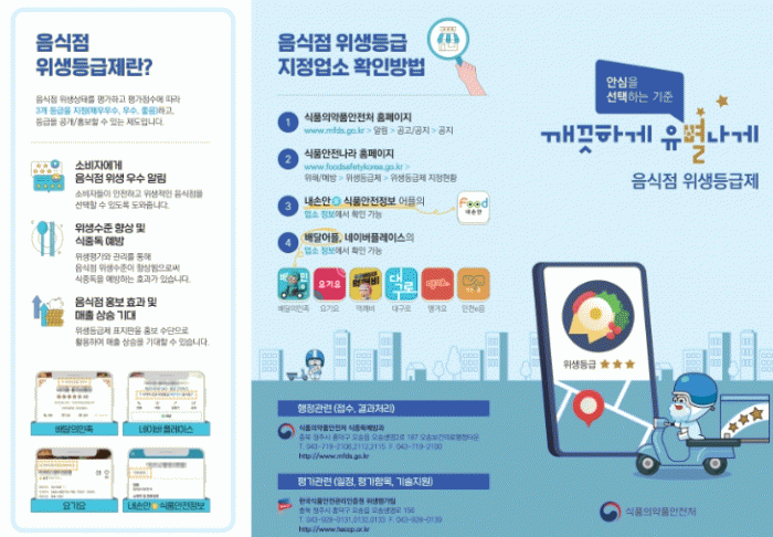 ¡®À½½ÄÁ¡ À§»ýµî±ÞÁ¦¡¯´Â ¿µ¾÷ÀÚ°¡ À§»ýµî±Þ Æò°¡¸¦ ½ÅûÇϸé Çѱ¹½Äǰ¾ÈÀü°ü¸®ÀÎÁõ¿øÀÌ À½½ÄÁ¡ÀÇ À§»ý »óŸ¦ Æò°¡ÇØ ¡®¸Å¿ì¿ì¼ö¡¯, ¡®¿ì¼ö¡¯, ¡®ÁÁÀ½¡¯ µî 3°³ µî±ÞÀ» ÁöÁ¤¡¤°ø°³ÇÏ´Â Á¦µµ·Î, 2017³â 5¿ùºÎÅÍ ½ÃÇàµÇ°í ÀÖ´Ù.
