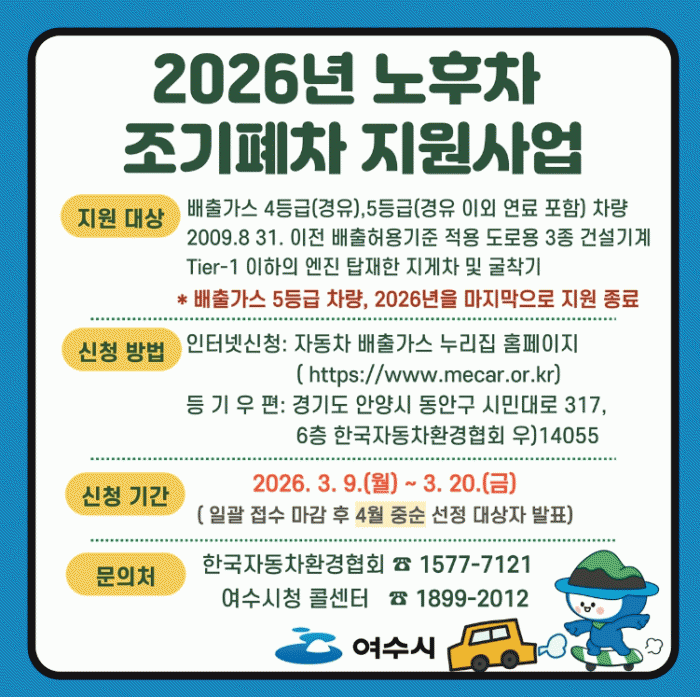 [ÅåÅå´º½º]¿©¼ö½Ã´Â ¹Ì¼¼¸ÕÁö Àú°¨°ú ´ë±âȯ°æ °³¼±À» À§ÇØ ¿À´Â 9ÀϺÎÅÍ 20ÀϱîÁö 2ÁÖ°£ ¡®³ëÈÄÂ÷ Á¶±âÆóÂ÷ Áö¿ø»ç¾÷¡¯ ½ÅûÀ» ¹Þ´Â´Ù°í ¹àÇû´Ù.