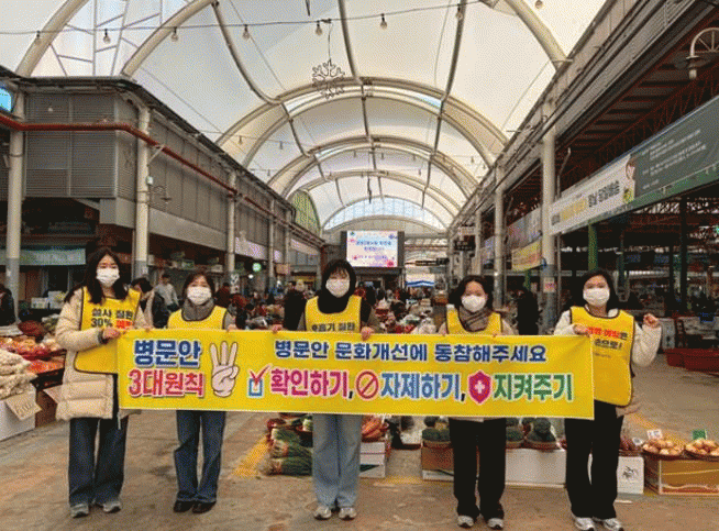 ƯÈ÷ ¼³ ¿¬ÈÞ¸¦ ¾ÕµÐ 2¿ù 11ÀÏ ±¤¾çÀ¾ 5ÀϽÃÀå ÀÏ¿ø¿¡¼ º¸°Ç¼Ò Á÷¿ø 5¸íÀÌ Âü¿©ÇØ º´¹®¾È ¹®È°³¼± Ä·ÆäÀÎÀ» ÆîÄ¡¸ç, ½Ã¹Îµé¿¡°Ô º´¹®¾È ¹®È °³¼± 3´ë ¿øÄ¢ÀÎ ¡ãÈ®ÀÎÇϱâ(º´¹®¾È °¡´É ½Ã°£°ú Àå¼Ò È®ÀÎ) ¡ãÀÚÁ¦Çϱâ(ȯÀÚ¸¦ À§ÇØ º´½Ç ¸éȸ ÀÚÁ¦) ¡ãÁöÄÑÁÖ±â(¼Õ À§»ý, ±âħ ¿¹Àý µî ¿¹¹æ¼öÄ¢ Áؼö)ÀÇ ½ÇõÀ» ¾È³»Çß´Ù.