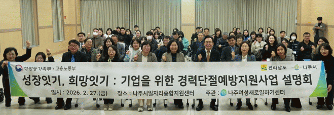 ³ªÁÖ¿©¼º»õ·ÎÀÏÇϱ⼾ÅÍ´Â À̹ø ¼³¸íȸ¸¦ ÅëÇØ ±¸ÃàµÈ ¹Î°ü Çù·Â ±â¹ÝÀ» ¹ÙÅÁÀ¸·Î ±â¾÷ ¸ÂÃãÇü ÄÁ¼³ÆÃ°ú °æ·Â ´ÜÀý ¿¹¹æ ÇÁ·Î±×·¥À» È®´ëÇØ ¿©¼º °í¿ëÀ¯Áö¿Í ÀÏÇϱâ ÁÁÀº Á÷Àå¹®È È®»êÀ» Áö¼ÓÀûÀ¸·Î ÃßÁøÇÒ °èȹÀÌ´Ù.