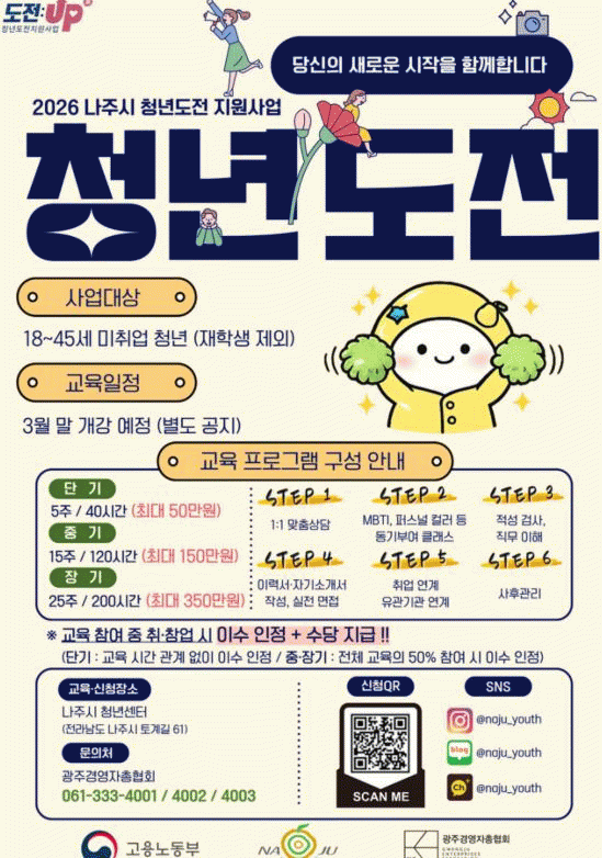 ³ªÁÖ½Ã¿Í ±¤Áְ濵ÀÚÃÑÇùȸ°¡ ÁÖ°üÇÏ´Â À̹ø »ç¾÷Àº ÃÖ±Ù 6°³¿ù°£ Ãë¾÷À̳ª ±³À°, Á÷¾÷ÈÆ·Ã Âü¿© ÀÌ·ÂÀÌ ¾ø´Â 18¼¼ºÎÅÍ 45¼¼±îÁöÀÇ ±¸Á÷´Ü³ä û³â°ú ÀÚ¸³Áغñ û³â, û¼Ò³â ½°ÅÍ ÀÔ¡¤Åð¼Ò û³â µîÀ» ´ë»óÀ¸·Î ÇÑ´Ù.