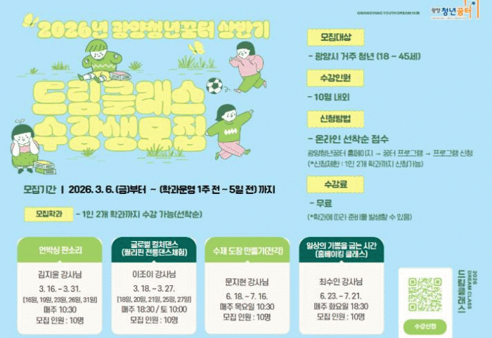 [ÅåÅå´º½º]±¤¾çû³â²ÞÅÍ´Â Áö¿ª û³âÀÌ Á÷Á¢ ±âȹÇÏ°í ¿î¿µÇϴ û³â ÁÖµµÇü ÇнÀ ÇÁ·Î±×·¥ ¡®2026³â »ó¹Ý±â µå¸²Å¬·¡½º¡¯ ¼ö°»ýÀ» ¸ðÁýÇÑ´Ù°í ¹àÇû´Ù.