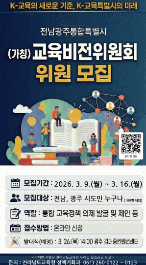 [ÅåÅå´º½º]Àü¶ó³²µµ±³À°Ã»ÀÌ Àü³².±¤ÁÖ ÅëÇÕ±³À° Á¤Ã¥À» ¹ß±¼.Á¦½ÃÇÏ´Â ¡®(°¡Äª) Àü³²±¤ÁÖ±³À°ÇàÁ¤ÅëÇÕ ±³À°ºñÀüÀ§¿øÈ¸¡¯¸¦ ±¸¼º¡¤¿î¿µÅ°·Î Çϰí, 16ÀϱîÁö Àü³²±¤ÁÖ ½Ãµµ¹Î À§¿ø 100¿© ¸íÀ» °ø°³ ¸ðÁýÇÑ´Ù.