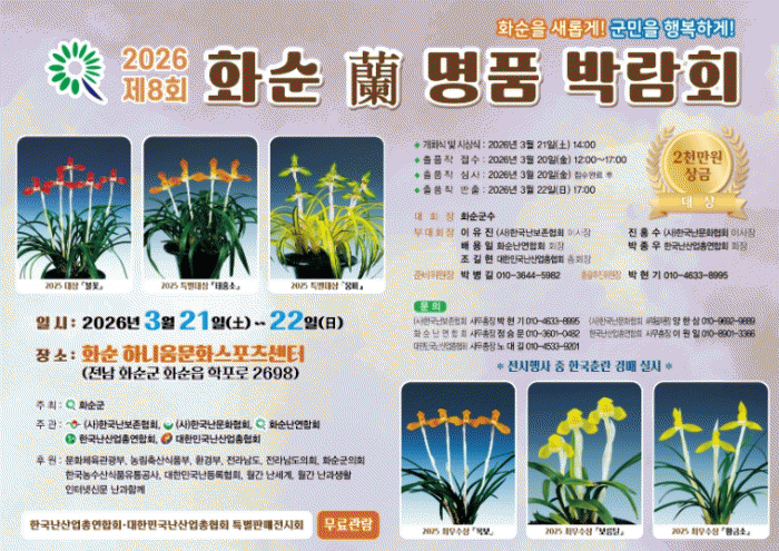 [ÅåÅå´º½º]Àü³² ȼø±º)Àº ¡®2026 Á¦8ȸ ȼø ³ ¸íǰ ¹Ú¶÷ȸ¡¯¸¦ ¿À´Â 3¿ù 21ÀϺÎÅÍ 22ÀϱîÁö ȼø ÇÏ´Ï¿ò¹®È½ºÆ÷Ã÷¼¾ÅÍ ½Ç³»Ã¼À°°ü¿¡¼ °³ÃÖÇÑ´Ù°í ¹àÇû´Ù.
