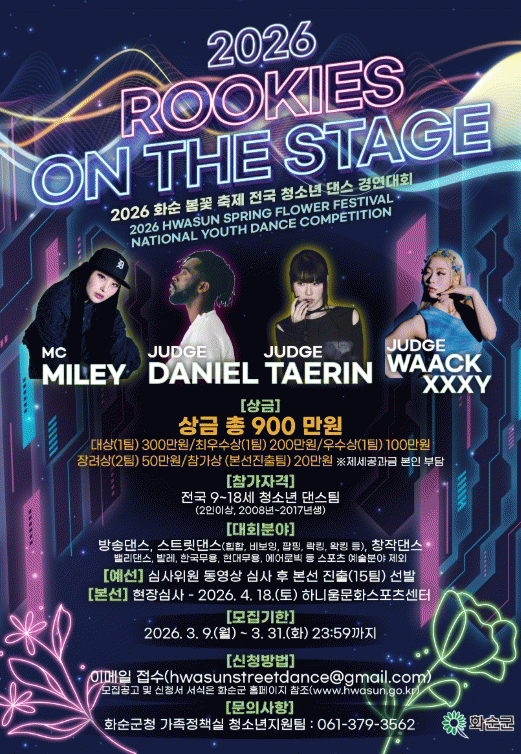 °æ¿¬ Á¾¸ñÀº ¹æ¼Û´í½º, ½ºÆ®¸®Æ®´í½º, âÀÛ´í½º Áß ÀÚÀ¯·Ó°Ô ¼±ÅÃÇÒ ¼ö ÀÖ´Ù. Á¢¼ö ±â°£Àº 2026³â 3¿ù 31ÀϱîÁöÀ̸ç, Âü°¡ ½Åû¼¿Í ´í½º µ¿¿µ»óÀ» À̸ÞÀÏ·Î Á¦ÃâÇÏ¸é µÈ´Ù.