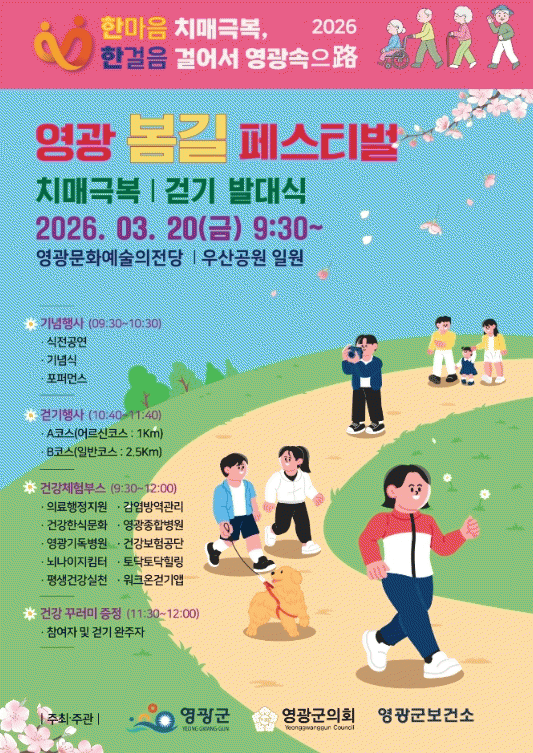 À̹ø Çà»ç´Â¡°±â¾ïÀ» ÀÕ´Ù Èñ¸ÁÀ» °È´Ù ¿µ±¤ÀÌ ÇÔ²²ÇÏ´Ù¡±¶ó´Â ½½·Î°Ç ¾Æ·¡ ±º¹ÎÀÌ ÇÔ²² °ÉÀ¸¸ç °Ç°À» ´ÙÁö°í, Ä¡¸Å¿¡ ´ëÇÑ ¿Ã¹Ù¸¥ ÀÌÇØ¿Í µû¶æÇÑ °ü½ÉÀ» ³ª´©±â À§ÇØ ¸¶·ÃµÆ´Ù.