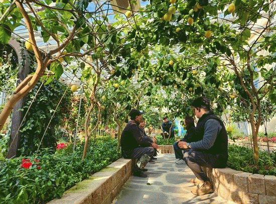 ¿Â½Ç ³»ºÎ¿¡´Â °¨±Ö·ù µî ¾Æ¿´ë ½Ä¹°ÀÌ ÅͳΠÇüÅ·Π½ÄÀçµÇ¾î À̱¹ÀûÀÎ ºÐÀ§±â¸¦ ¿¬ÃâÇϰí ÀÖÀ¸¸ç, ½Ä¹°°ú ²É »çÀ̸¦ µû¶ó »êÃ¥ÇÒ ¼ö ÀÖ´Â º¸Çà·Î°¡ Á¶¼ºµÇ¾î °ü¶÷°´µéÀÌ ÀÚ¿¬ ¼Ó¿¡¼ Æí¾ÈÇÑ ½Ã°£À» º¸³¾ ¼ö ÀÖµµ·Ï ¸¶·ÃµÇ¾î ÀÖ´Ù.