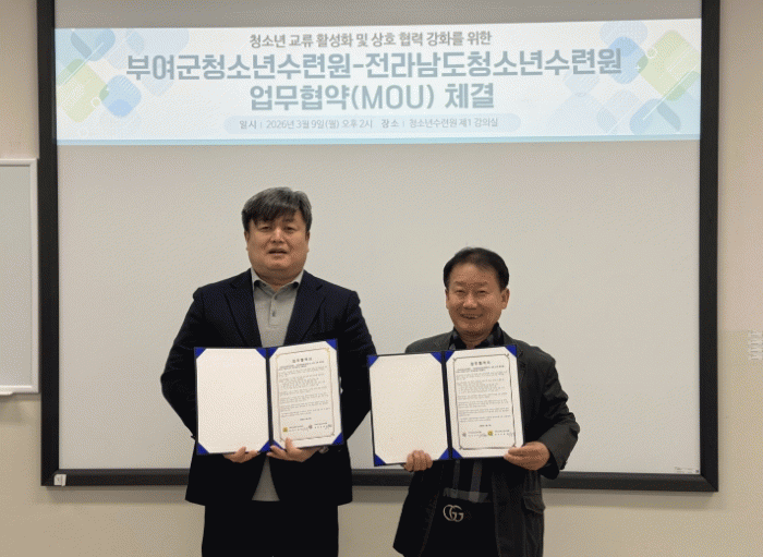 [ÅåÅå´º½º]Àü¶ó³²µµÃ»¼Ò³â¼ö·Ã¿ø(¿øÀå ÀÌÃẹ)Àº ºÎ¿©±ºÃ»¼Ò³â¼ö·Ã¿ø°ú »óÈ£ ±³·ù ¹× Çù·Â °È¸¦ À§ÇÑ ¾÷¹«Çù¾à(MOU)À» ü°áÇß´Ù°í ¹àÇû´Ù.