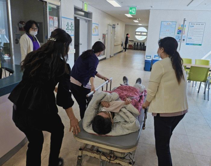 ¿ä¾çº´¿øÀÇ Æ¯¼º»ó °Åµ¿ÀÌ ºÒÆíÇÑ È¯ÀÚ°¡ ¸¹Àº Á¡À» °í·ÁÇØ ¡ãȯÀÚ À̵¿°ú ´ëÇÇ ¿ä·É ¡ã´ëÇÇ °æ·Î È®º¸ ¡ã±¸±Þ ¹× ÀÀ±Þ ´ëÀÀ ¡ãÀ¯°ü±â°ü °£ »óȲ ÀüÆÄ ü°è µîÀ» ÁßÁ¡ÀûÀ¸·Î Á¡°ËÇß´Ù.