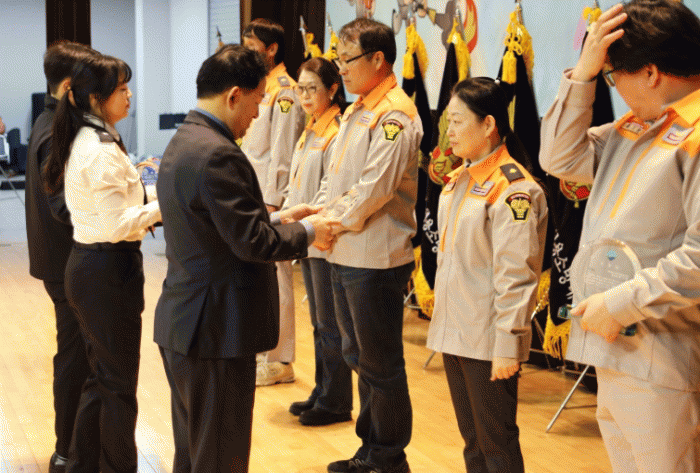 2ºÎ Çà»ç·Î ÁøÇàµÈ ±â³ä½Ä¿¡¼´Â Àç³ ÇöÀå¿¡¼ ±º¹ÎÀÇ »ý¸í°ú Àç»ê º¸È£¸¦ À§ÇØ Çå½ÅÇØ ¿Â ¿ì¼ö ÀÇ¿ë¼Ò¹æ´ë¿ø¿¡ ´ëÇÑ Ç¥Ã¢ ¼ö¿©°¡ ÀÌ·ïÁ³À¸¸ç, ´ë¿øµéÀÇ ¼þ°íÇÑ Èñ»ýÁ¤½Å°ú ºÀ»ç Á¤½ÅÀ» ±â¸®´Â ½Ã°£ÀÌ ¸¶·ÃµÆ´Ù.
