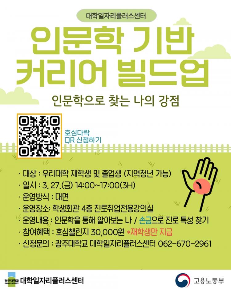 [ÅåÅå´º½º]±¤ÁÖ´ëÇб³(ÃÑÀå ±èµ¿Áø) ´ëÇÐÀÏÀÚ¸®Ç÷¯½º¼¾ÅÍ´Â ÀçÇлý°ú Á¹¾÷»ý, Áö¿ª û³âµéÀÇ ÀÚ±â ÀÌÇØ¿Í Áø·Î Ž»öÀ» Áö¿øÇϱâ À§ÇØ ¡®2026Çг⵵ Àι®ÇÐ ±â¹Ý Ä¿¸®¾î ºôµå¾÷: Àι®ÇÐÀ¸·Î ã´Â ³ªÀÇ °Á¡ Ư°¡¯À» ¿î¿µÇÑ´Ù.