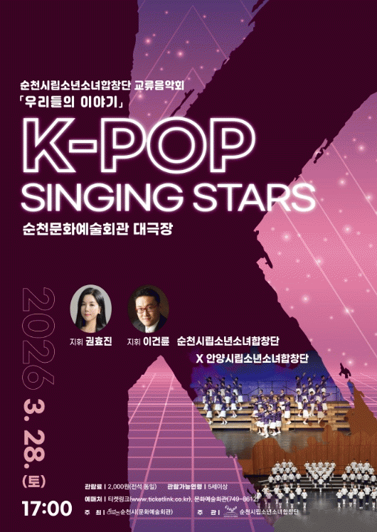 [ÅåÅå´º½º] ¼øÃµ½Ã´Â ¾È¾ç½Ã¸³¼Ò³â¼Ò³àÇÕâ´Ü°ú ±³·ùÀ½¾Çȸ '¿ì¸®µéÀÇ À̾߱â'¸¦ ¿À´Â 28ÀÏ ¿ÀÈÄ 5½Ã¿¡ ¼øÃµ½Ã¹®È¿¹¼úȸ°ü ´ë±ØÀå¿¡¼ °³ÃÖÇÑ´Ù.
