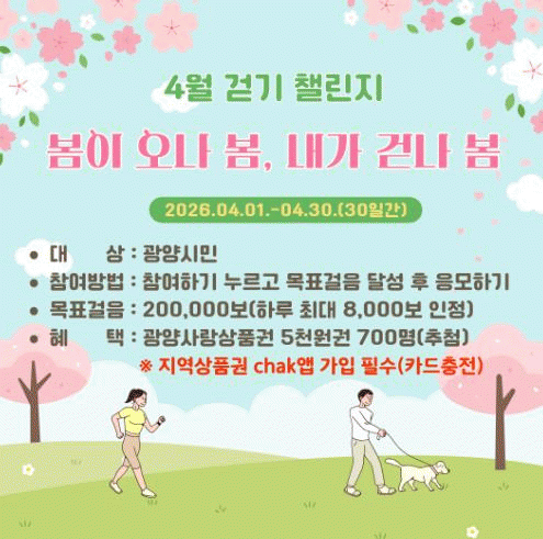 [ÅåÅå´º½º]±¤¾ç½Ã´Â ¿À´Â 4¿ù 1ÀϺÎÅÍ 4¿ù 30ÀϱîÁö °Ç°°È±â ½Çõ ¸ð¹ÙÀÏ °È±â¾Û ¿öÅ©¿ÂÀ» ÅëÇØ ¡®º½ÀÌ ¿À³ª º½, ³»°¡ °È³ª º½! 4¿ù °È±â 縰Áö¡¯¸¦ ¿î¿µÇÑ´Ù°í ¹àÇû´Ù.