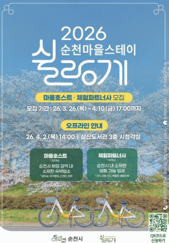 [ÅåÅå´º½º]¼øÃµ½Ã´Â '2026 ¼øÃµ¸¶À»½ºÅ×ÀÌ ½¯¶û°Ô V2.0'¿¡ Âü¿©ÇÒ ¸¶À» È£½ºÆ®¿Í üÇèÆÄÆ®³Ê»ç¸¦ ¿À´Â 4¿ù 10ÀϱîÁö ¸ðÁýÇÑ´Ù°í ¹àÇû´Ù.