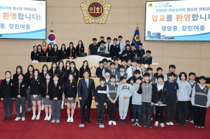 [ÅåÅå´º½º]Àü¶ó³²µµÀÇȸ Â÷¿µ¼ö ÀÇ¿ø(´õºÒ¾î¹ÎÁÖ´ç, °Áø)Àº 3¿ù 26ÀÏ Àü¶ó³²µµÀÇȸ º»È¸ÀÇÀå¿¡¼ ¿¸° 2026³â Á¦2ȸ 'û¼Ò³â ÀÇȸ±³½Ç'¿¡ Âü¼®ÇØ °Áø¿©ÀÚÁßÇб³¿Í ¿µ¾ÏÁßÇб³ ÇлýµéÀ» ´ë»óÀ¸·Î Áö¹æÀÇȸÀÇ ¿ªÇÒ°ú µµÀÇ¿øÀÇ Ã¥¹«¸¦ ¼³¸íÇϰí, ¡°Ã»¼Ò³âÀÇ °ü½É°ú Âü¿©°¡ Àü³²ÀÇ ¹Ì·¡¸¦ ¹Ù²Ù´Â ÈûÀÌ µÈ´Ù¡±°í °Á¶Çß´Ù.