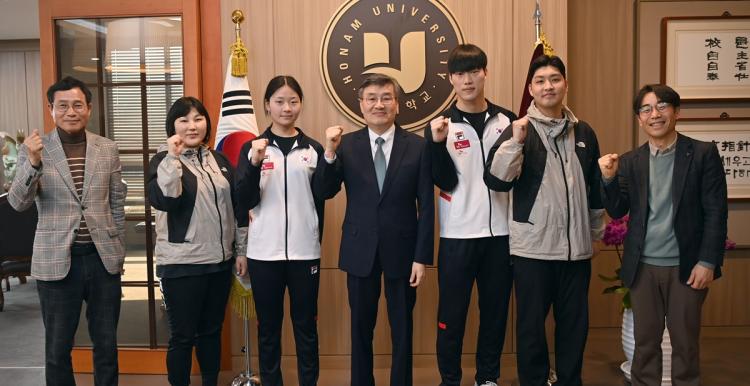 [ÅåÅå´º½º]¹Ú»óö È£³²´ëÇб³ ÃÑÀåÀº 3¿ù 26ÀÏ ¡®2026¼¼°èû¼Ò³âÆæ½Ì¼±¼ö±Ç´ëȸ¡¯¿¡ ÃâÀüÇÏ´Â ¿øÅ¿µ(½ºÆ÷Ã÷·¹ÀúÇаú 2Çгâ), ±èÈÀ±(½ºÆ÷Ã÷·¹ÀúÇаú 1Çгâ) ¼±¼ö¸¦ °Ý·ÁÇß´Ù.
