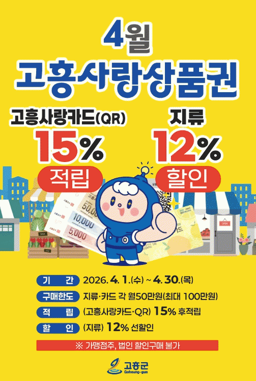 [ÅåÅå´º½º] °íÈﱺÀº Áö³ 1¿ùºÎÅÍ 3¿ù±îÁö ÁøÇàÇÑ °íÈï»ç¶û»óǰ±Ç Ưº°ÇÒÀÎ Çà»çÀÇ ¶ß°Å¿î ¼º¿ø¿¡ ÈûÀÔ¾î, ¿À´Â 4¿ù 1ÀϺÎÅÍ ÇÑ ´Þ°£ °íÈï»ç¶û»óǰ±Ç ÇÒÀÎ ÇýÅÃÀ» ¿¬Àå ¿î¿µÇÏ¸ç ¹Î»ý°æÁ¦¿¡ ¿Â±â¸¦ ´õÇÑ´Ù.