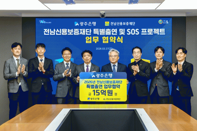 [ÅåÅå´º½º]±¤ÁÖÀºÇàÀº 27ÀÏ ±¤ÁÖÀºÇà º»Á¡¿¡¼ Á¤Àϼ± ±¤ÁÖÀºÇàÀå, À̰±Ù Àü³²½Å¿ëº¸ÁõÀç´Ü ÀÌ»çÀå ¹× °ü°èÀÚ°¡ Âü¼®ÇÑ °¡¿îµ¥, Àü³²Áö¿ª ¼Ò±â¾÷¡¤¼Ò»ó°øÀÎ ±ÝÀ¶Áö¿øÀ» À§ÇÑ ¡®2026³â Àü³²½Å¿ëº¸ÁõÀç´Ü Ưº°Ã⿬ ¾÷¹«Çù¾à¡¯°ú ¡®SOS ÇÁ·ÎÁ§Æ® Çù¾à¡¯À» ü°áÇß´Ù°í ¹àÇû´Ù.