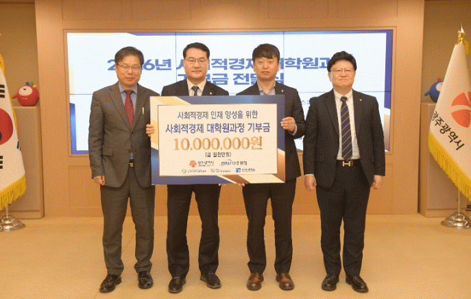 [ÅåÅå´º½º]±¤ÁÖÁö¿ª »çȸÀû±â¾÷ÀÎ ¢ß´Ù¿ìȯ°æÀÌ ±¤Áֽð¡ ÃßÁø ÁßÀÎ ¡®»çȸÀû°æÁ¦ ´ëÇпø°úÁ¤ Áö¿ø»ç¾÷¡¯À» ÈÄ¿øÇÏ´Â ±âºÎ±ÝÀ» Àü´ÞÇß´Ù.