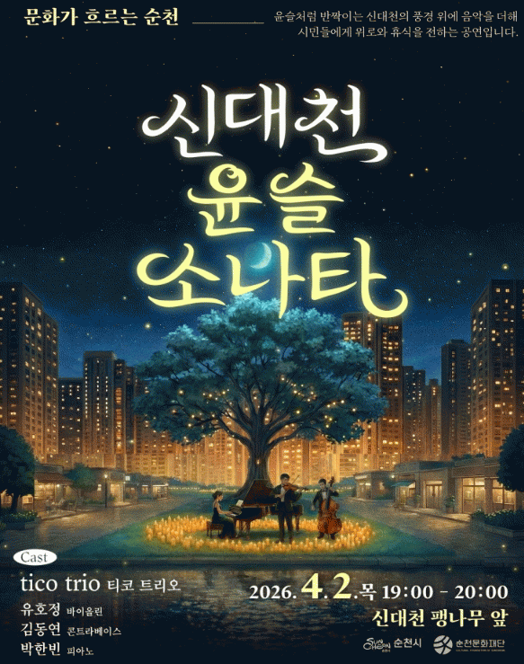 [ÅåÅå´º½º] Àç´Ü¹ýÀÎ ¼øÃµ¹®ÈÀç´ÜÀº ¿À´Â 4¿ù 2ÀÏ ¸ñ¿äÀÏ, Àú³á 7½ÃºÎÅÍ ÇÑ ½Ã°£ µ¿¾È ½Å´ëõ ÆØ³ª¹« ¾Õ¿¡¼ °íǰ°Ý ¾ß°£ Ŭ·¡½Ä °ø¿¬ '½Å´ëõ, À±½½¼Ò³ªÅ¸'¸¦ °³ÃÖÇÑ´Ù°í ¹àÇû´Ù.