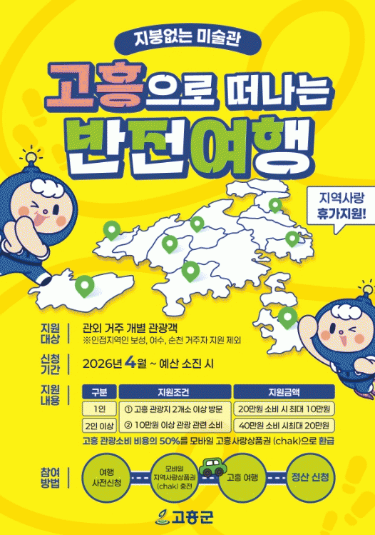 [ÅåÅå´º½º] °íÈﱺÀÌ ¹®ÈüÀ°°ü±¤ºÎ¿Í Çѱ¹°ü±¤°ø»ç°¡ ÁÖ°üÇÏ´Â ¡®2026 Áö¿ª»ç¶û ÈÞ°¡Áö¿ø ½Ã¹ü»ç¾÷¡¯ ´ë»óÁö·Î ÃÖÁ¾ ¼±Á¤µÊ¿¡ µû¶ó, 4¿ù 1ÀϺÎÅÍ »ç¾÷À» ½ÃÇàÇÏ°í º»°ÝÀûÀÎ Âü°¡ ½ÅûÀ» ¹Þ´Â´Ù.