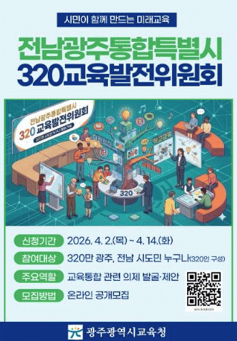 [ÅåÅå´º½º]±¤Áֽñ³À°Ã»Àº ±¤ÁÖ?Àü³² ±³À°ÇàÁ¤ ÅëÇÕ ½Ã´ë¸¦ ´ëºñÇϰí ÅëÇÕ ÀÌÈÄ Áö¿ª ±³À°ÀÇ ¹Ì·¡ û»çÁøÀ» ±×¸®±â À§ÇÑ ¡®Àü³²±¤ÁÖÅëÇÕÆ¯º°½Ã 320±³À°¹ßÀüÀ§¿øÈ¸¡¯¿¡ Âü¿©ÇÒ ½Ãµµ¹Î À§¿ø 320¸íÀ» °ø°³ ¸ðÁýÇÑ´Ù.