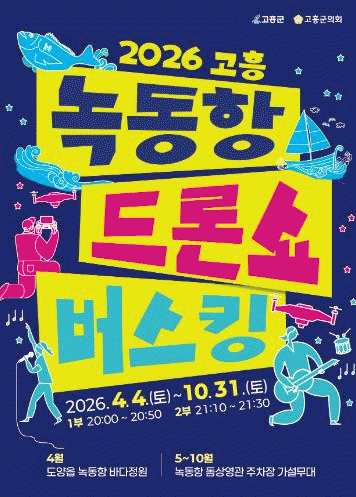 [ÅåÅå´º½º]°íÈﱺÀº 4¿ù 4ÀϺÎÅÍ 10¿ù 31ÀϱîÁö ¸ÅÁÖ Åä¿äÀÏ Àú³á 8½Ã, ³ìµ¿Ç× ¹Ù´ÙÁ¤¿ø ÀÏ¿ø¿¡¼ ¡®2026 °íÈï ³ìµ¿Ç× µå·Ð¼î ¹ö½ºÅ·¡¯ °ø¿¬À» °³ÃÖÇÑ´Ù°í ¹àÇû´Ù.