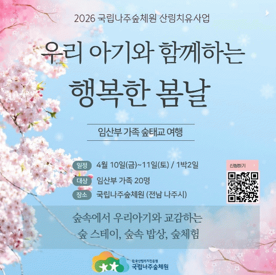 [ÅåÅå´º½º]»ê¸²Ã» Çѱ¹»ê¸²º¹ÁöÁøÈï¿ø(¿øÀå Á÷¹«´ëÇà Ȳ¼ºÅÂ) ±¹¸³³ªÁÖ½£Ã¼¿øÀº µû¶æÇÑ º½³¯À» ¸Â¾Æ ÀÓ»êºÎ °¡Á·À» ´ë»óÀ¸·Î ½£Å±³ ¿©Çà ¡®¿ì¸® ¾Æ±â¿Í ÇÔ²²ÇÏ´Â ÇູÇÑ º½³¯¡¯À» ¿î¿µÇÑ´Ù°í ¹àÇû´Ù.