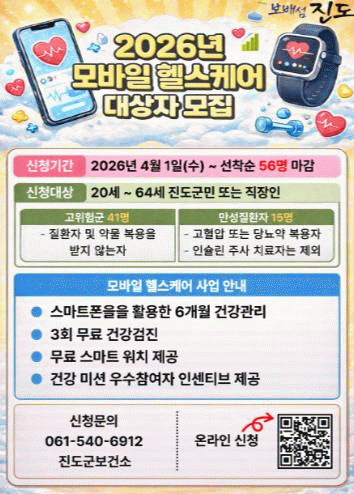[ÅåÅå´º½º]Áøµµ±ºº¸°Ç¼Ò´Â 4¿ù 1ÀϺÎÅÍ ¡®2026³â ¸ð¹ÙÀÏ ÇコÄɾî 2±â¡¯ ´ë»óÀÚ 56¸íÀ» ¼±Âø¼øÀ¸·Î ¸ðÁýÇϰí ÀÖ´Ù.