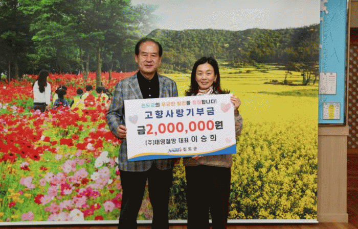 [ÅåÅå´º½º]Áøµµ±º¿¡ ¼ÒÀçÇÏ´Â ¢ßÅ¿µÃ¶¸ÁÀÇ À̽ÂÈñ ´ëÇ¥´Â Áö³ 3¿ù 30ÀÏ Áøµµ±ºÃ»À» ¹æ¹®ÇØ, Áö¿ª ¹ßÀü°ú ±º¹ÎÀÇ º¹¸® ÁõÁøÀ» À§ÇØ °íÇâ»ç¶û±âºÎ±Ý 200¸¸ ¿øÀ» ±âºÎ Çß´Ù.