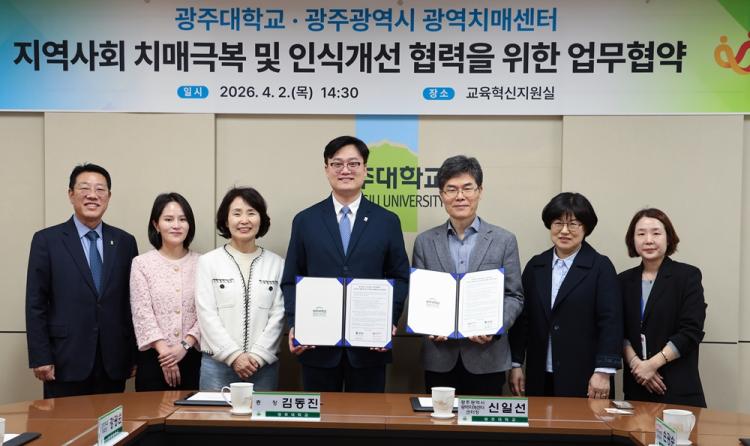 [ÅåÅå´º½º]±¤ÁÖ´ëÇб³(ÃÑÀå ±èµ¿Áø)´Â 4¿ù 2ÀÏ ±³³» ÇàÁ¤°ü 6Ãþ ±³À°Çõ½ÅÁö¿ø½Ç¿¡¼ Áö¿ª»çȸ Ä¡¸Å±Øº¹ ¹× Àνݳ¼± Çù·ÂÀ» À§ÇØ ±¤ÁÖ±¤¿ª½Ã ±¤¿ªÄ¡¸Å¼¾ÅÍ(¼¾ÅÍÀå ½ÅÀϼ±)¿Í ¾÷¹«Çù¾àÀ» ü°áÇß´Ù.